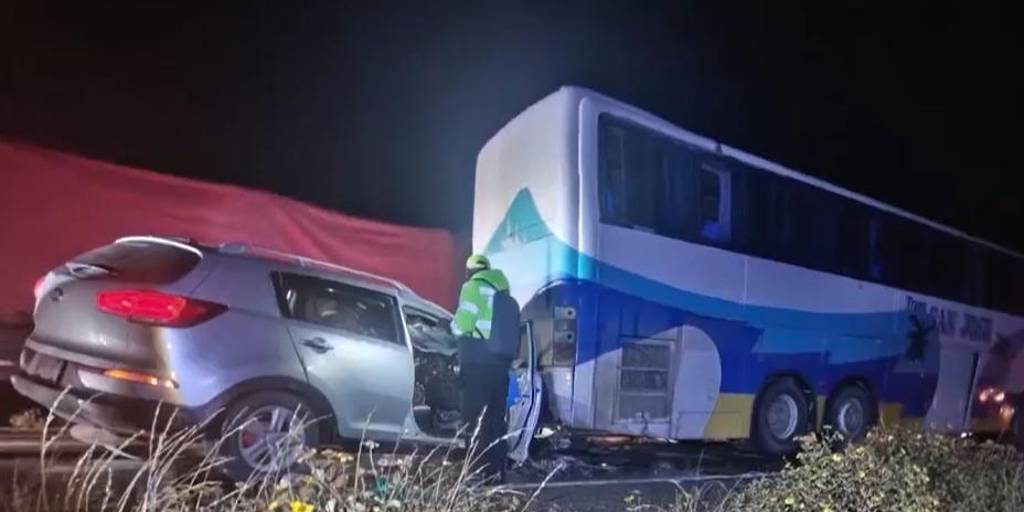 En las imágenes se observa que en el accidente de tránsito está implicado un bus de transporte interdepartamental y un vehículo particular.