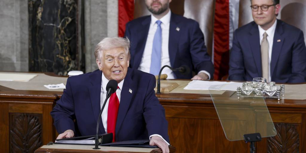 En 107 minutos de alocución, récord histórico para un discurso ante una sesión conjunta en el Congreso, Trump dijo que los cruces de inmigrantes indocumentados han cesado, que la entrada transfronteriza de fentanilo se ha reducido y que la inflación ha bajado, mientras los ingresos de las familias han subido, pese a que una mayoría de estadounidenses desaprueban su manejo de la economía, según las últimas encuestas.
