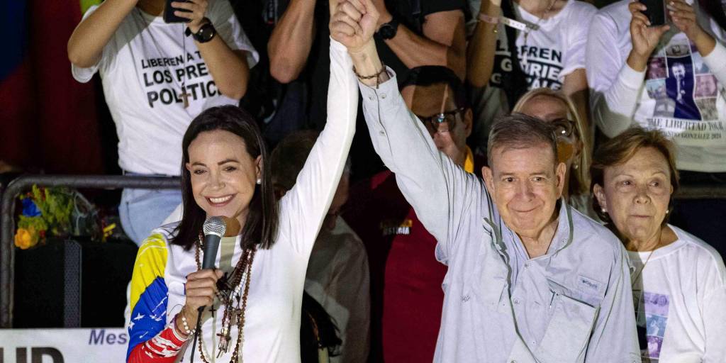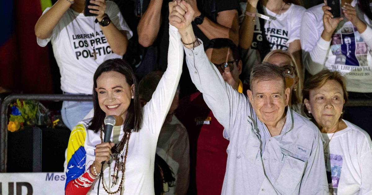 [Foto: EFE] / Fotografía de archivo del 25 de julio de 2024 que muestra a los líderes opositores de Venezuela María Corina Machado (izquierda) y Edmundo González Urrutia (derecha)