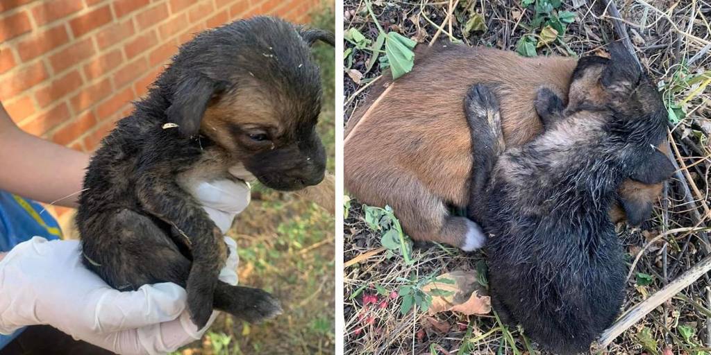 Según las imágenes, el pequeño perrito, de color café, fue hallado cubierto con pintura negra.