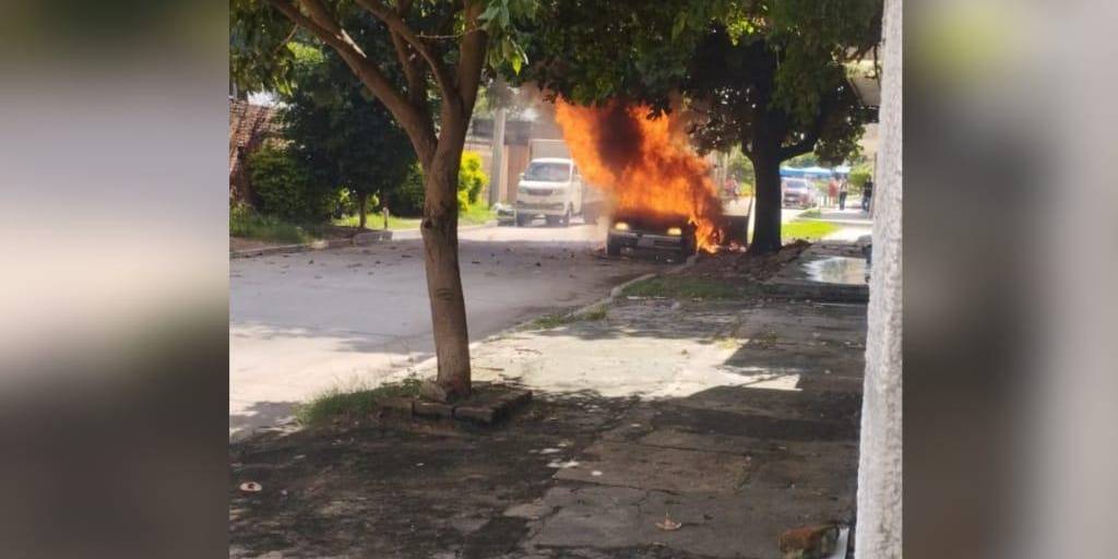 Un vehículo arde y queda reducido a chatarra en plena calle de Santa Cruz de la Sierra