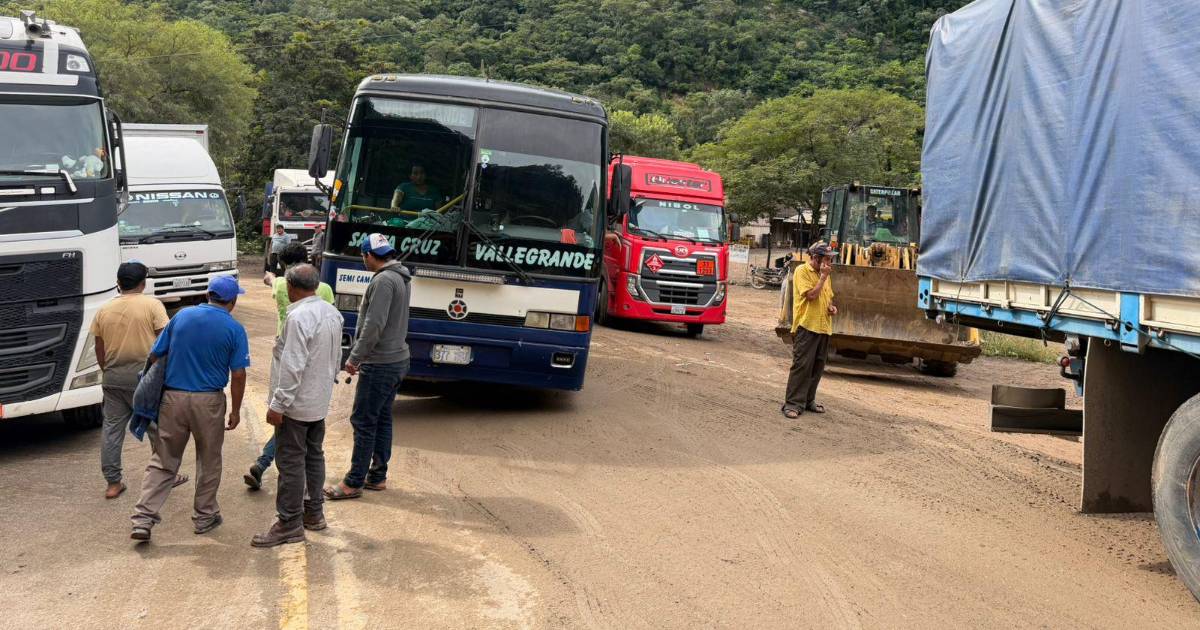 Vehículos quedan parados por el cierre del tramo La Angostura - Samaipata debido a derrumbes y caída de rocas