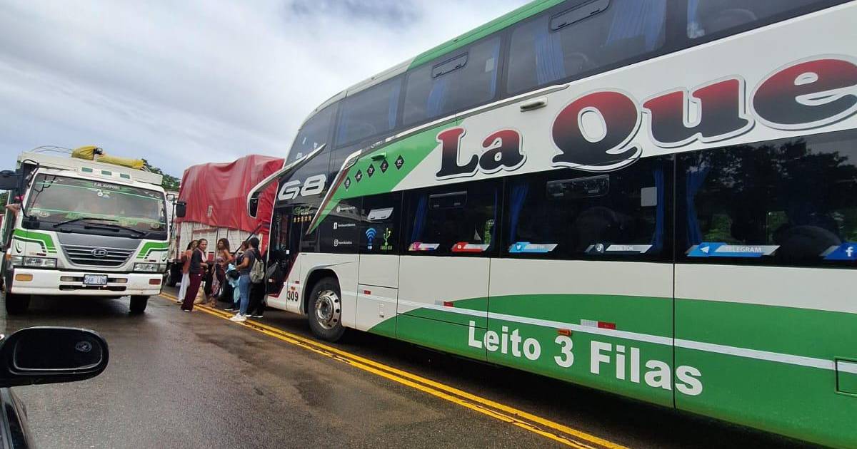Aproximadamente a cuatro kilómetros de llegar a la localidad de Abapó, en el municipio de Cabezas, Santa Cruz, se registra una larga fila de vehículos y camiones que están varados por los deslizamientos en el lugar a causa de las intensas lluvias.