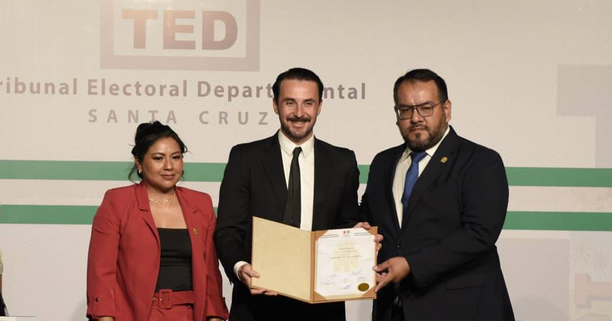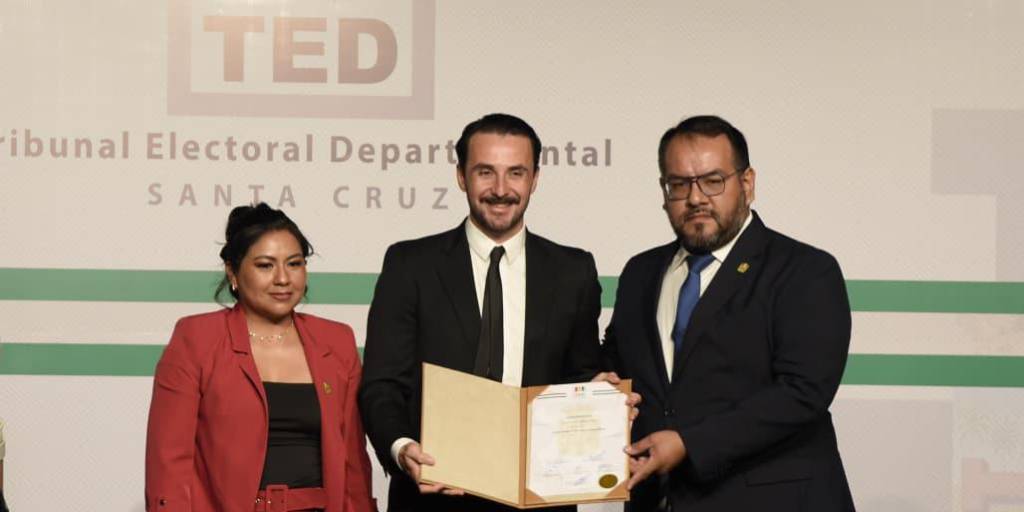 El gobernador electo de Santa Cruz, Juan Pablo Velasco recibió este martes su credencial por parte del Tribunal Electoral Departamental (TED) que lo acredita como gobernador electo de Santa Cruz.