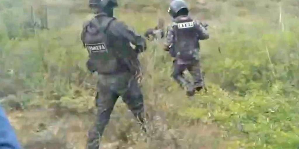Las imágenes muestran como los efectivos son obligados a caminar en medio de la vegetación mientras son amedrentados, posteriormente se ve a uno de los uniformados sacar un arma de fuego