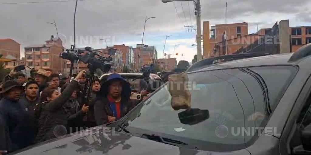 Argollo salió del edificio escoltado por sus seguidores y, antes de subir a su vehículo, saludó a quienes lo apoyaban y pedían fotografías. Sin embargo, al llegar a la vía pública, un grupo de ‘ponchos rojos’ arrojó un adoquin contra el parabrisa.