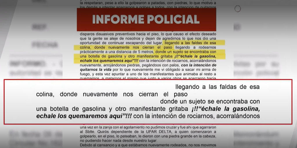 ¡Échale la gasolina, échale los quemaremos aquí!”, fueron las palabras que el uniformado señala haber escuchado.
