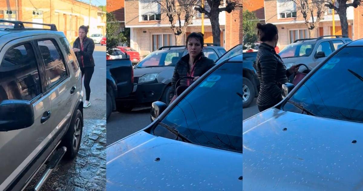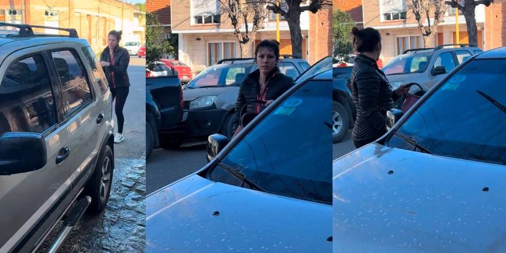 Con un balde de agua y una esponja, la mujer, identificada como Viky, lavó un vehículo en la calle, pero no se dio cuenta de un detalle importante: no era su auto.